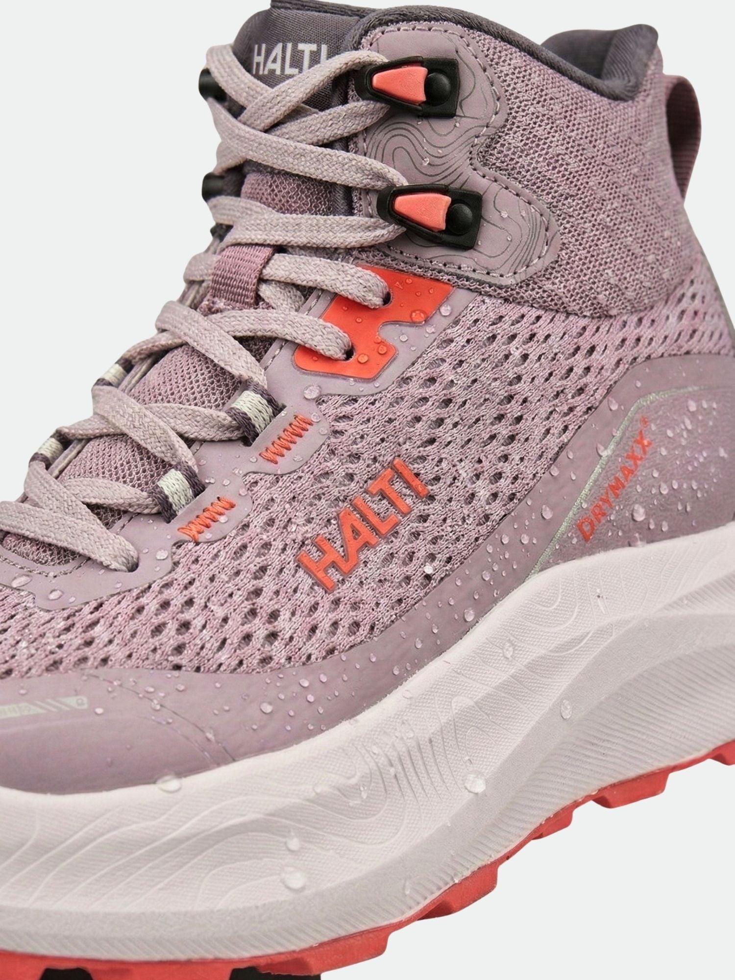 In Halti DrymaxX® footwear, the lining material is laminated with waterproof and breathable 100% PU membrane. Lining is in sock-construction with taped seams, to ensure total waterproofness and dry feet. DrymaxX® shoes are waterproof up to the top seam of socklining, and work best with technical socks. Wool as material, for an example is not recommended, because it absorbs moisture more effectively than membrane can extract it, which can result in damp feeling.