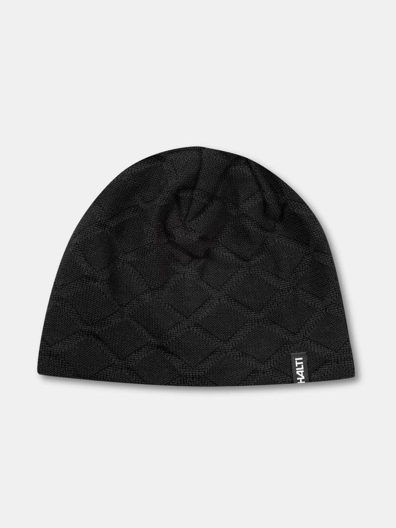 Halti Crostie Merino Beanie—black, diamond quilted, windproof hat perfect for cross country skiing.