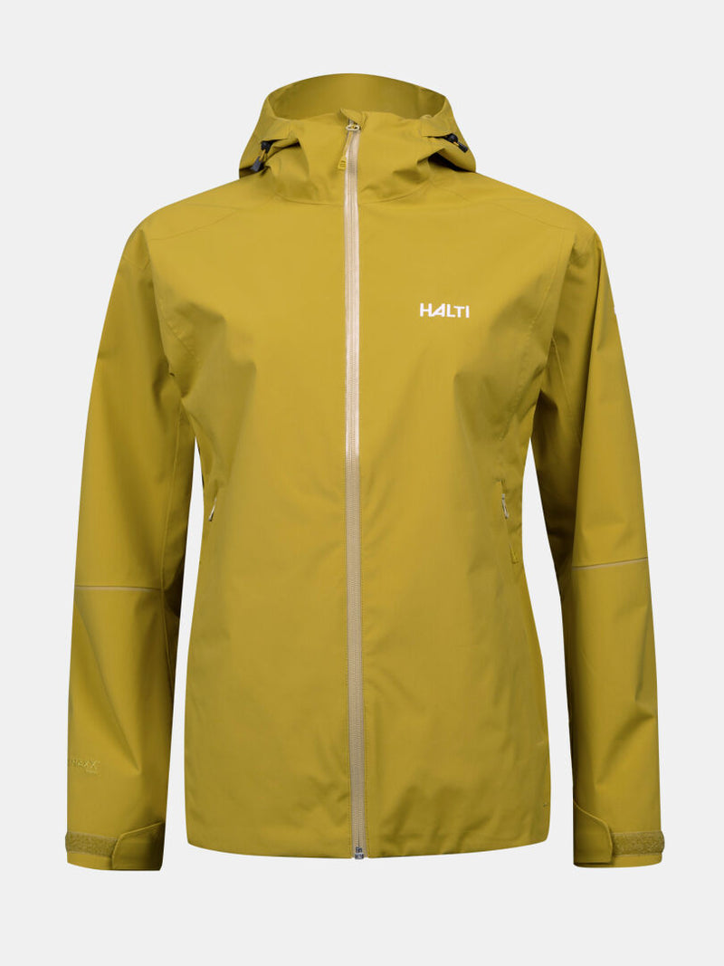 Halti Forter DX Shell Jacket Plus Women's—yellow, waterproof, breathable, front zipper, two pockets, logo.