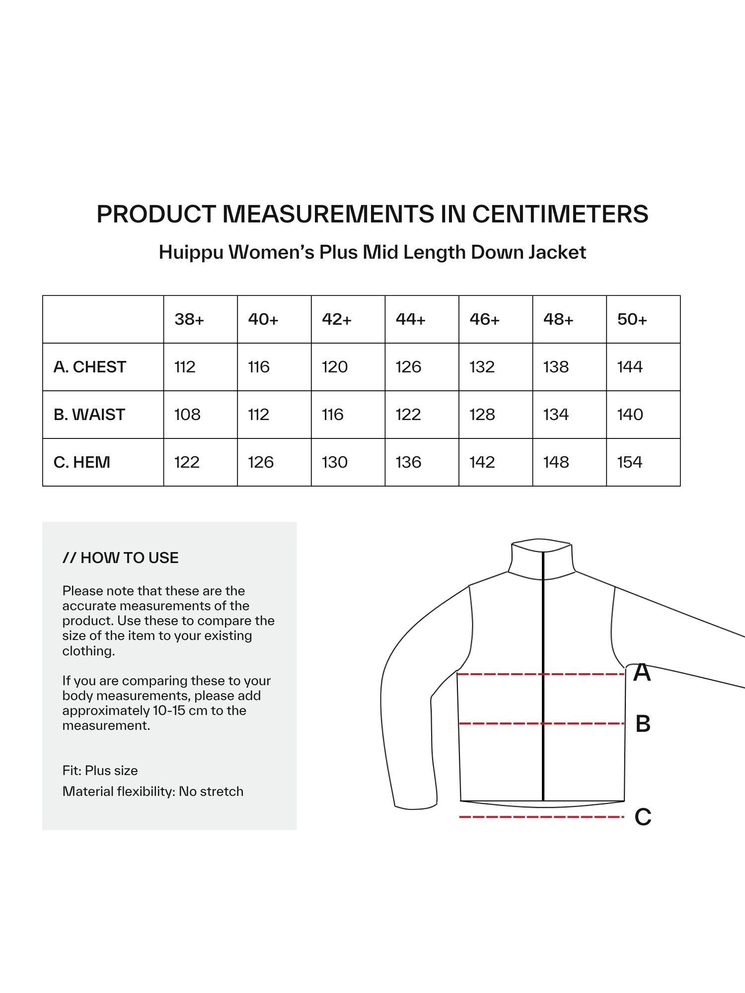 Women's Plus-size Huippu Down Jacket comes with a longer, more protective fit—making it the perfect year-round option for cold days and shifting seasons. With a clean, timeless look and premium components, it’s built for performance and everyday wear.