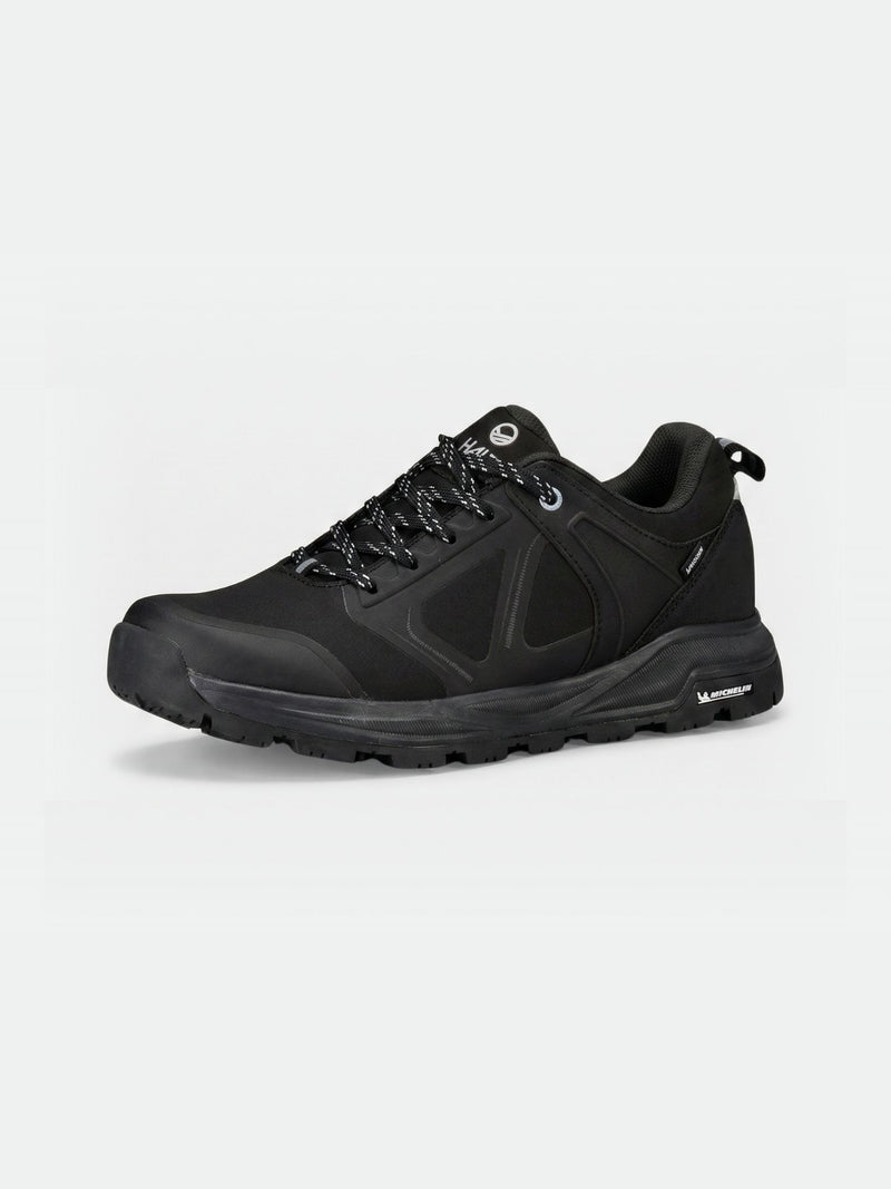 Waterproof low cut outdoor shoe, made with recycled softshell fabric, and featuring new Halti Michelin Ice Control Friction outsole for superb grip on wet and icy surfaces. DrymaxX membrane with moisture wicking mesh lining keeps feet dry in all weather, and reflective details improve visibility in darkness. Perfect for walking and outdoor activities in urban and sub-urban environment, designed especially for slippery surfaces such as water, ice and slush.